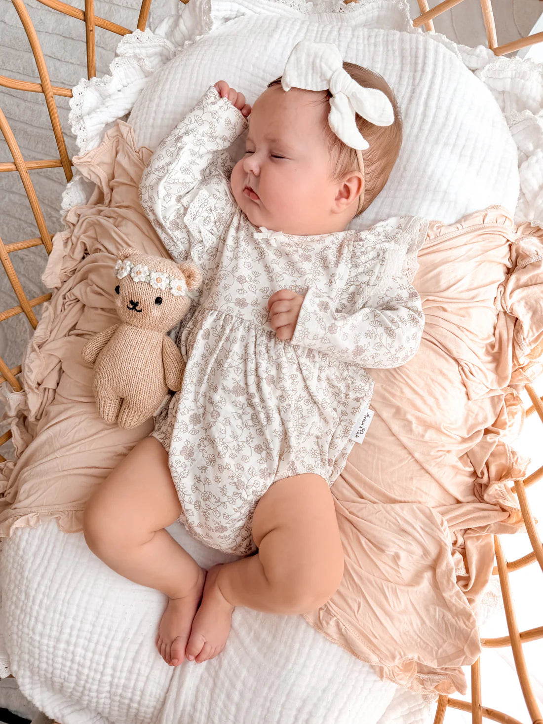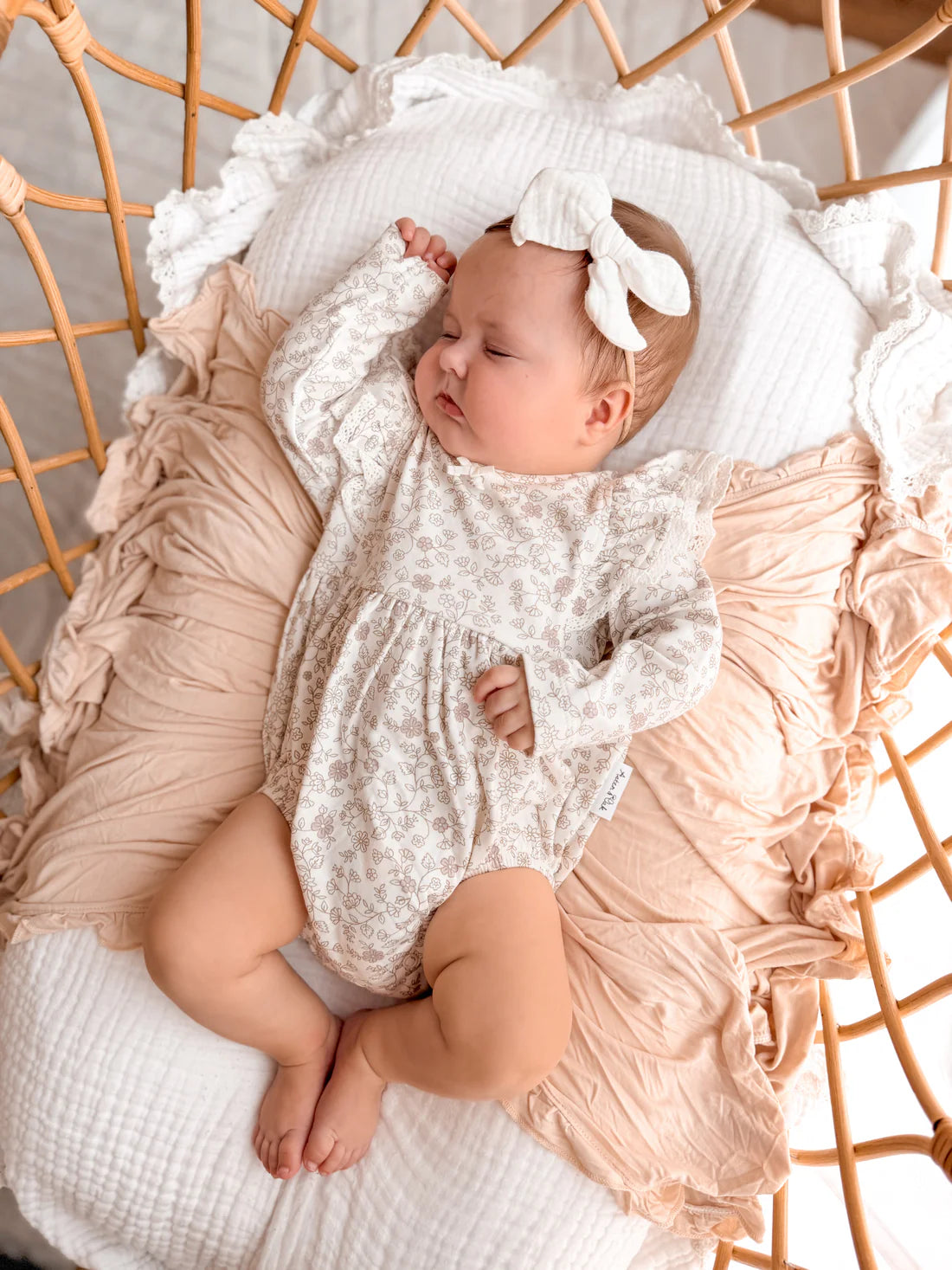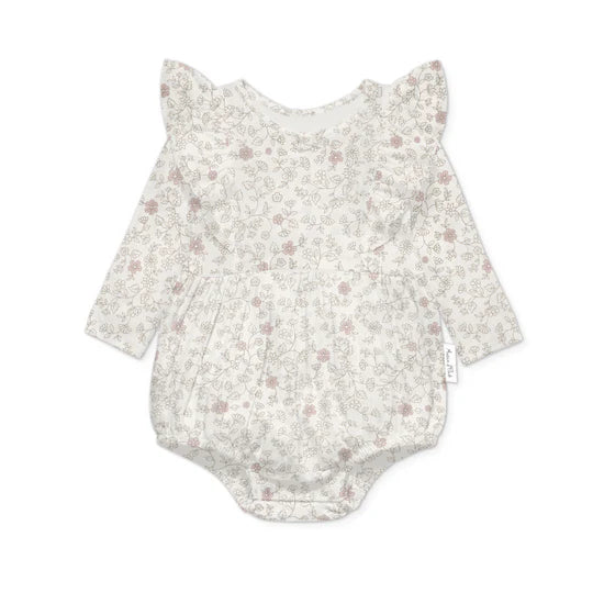 Heirloom-inspired, our Pippy Floral Bubble Romper is a beautifully considered piece that brings timeless charm and soft elegance to the season. Sweet frills at the front, a delicate bow detail and a keyhole closure create a graceful silhouette, perfect for special outings and cherished occasions.