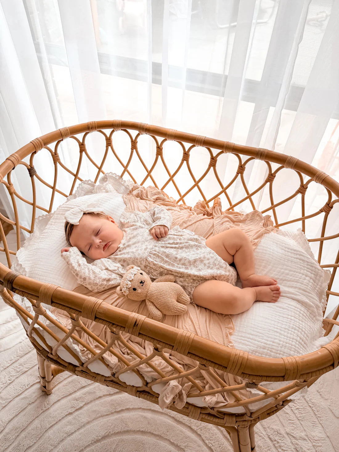 Delicate florals in blush hues over a natural base