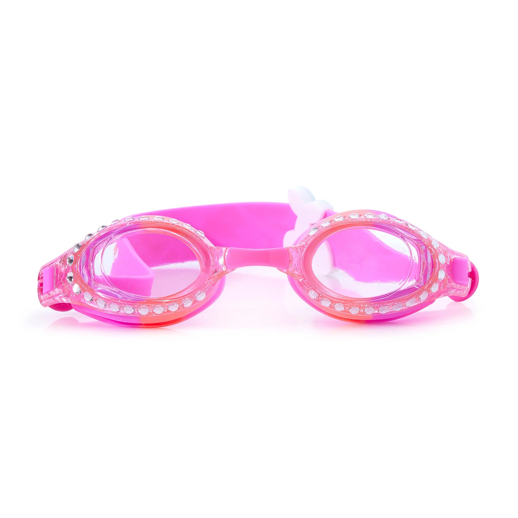 Did you know Bling2o’s first swim goggle was a glitter classic? Each season we recreate this iconic goggle more beautiful then last time. Dreamy Pink features a beautiful set of rhinestones on a traditional shaped frame with a sunshine and rainbows printed strap. There's a certain elegance when it comes to the classics, just add a cherry on top!