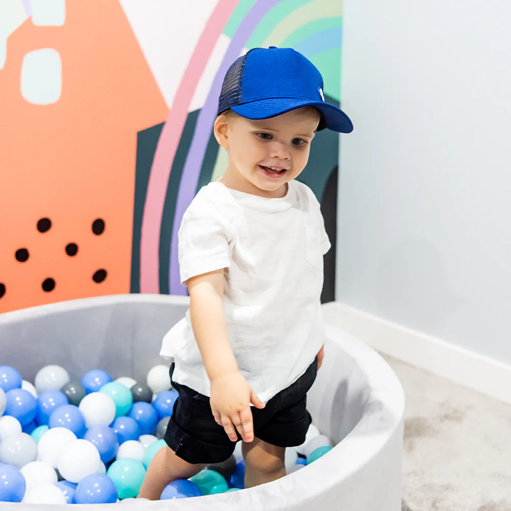 Looking for a cap that goes with everything? Say hello to the Sailor Trucker Cap – a bold, clean design in royal blue and navy that adds instant style to any outfit.