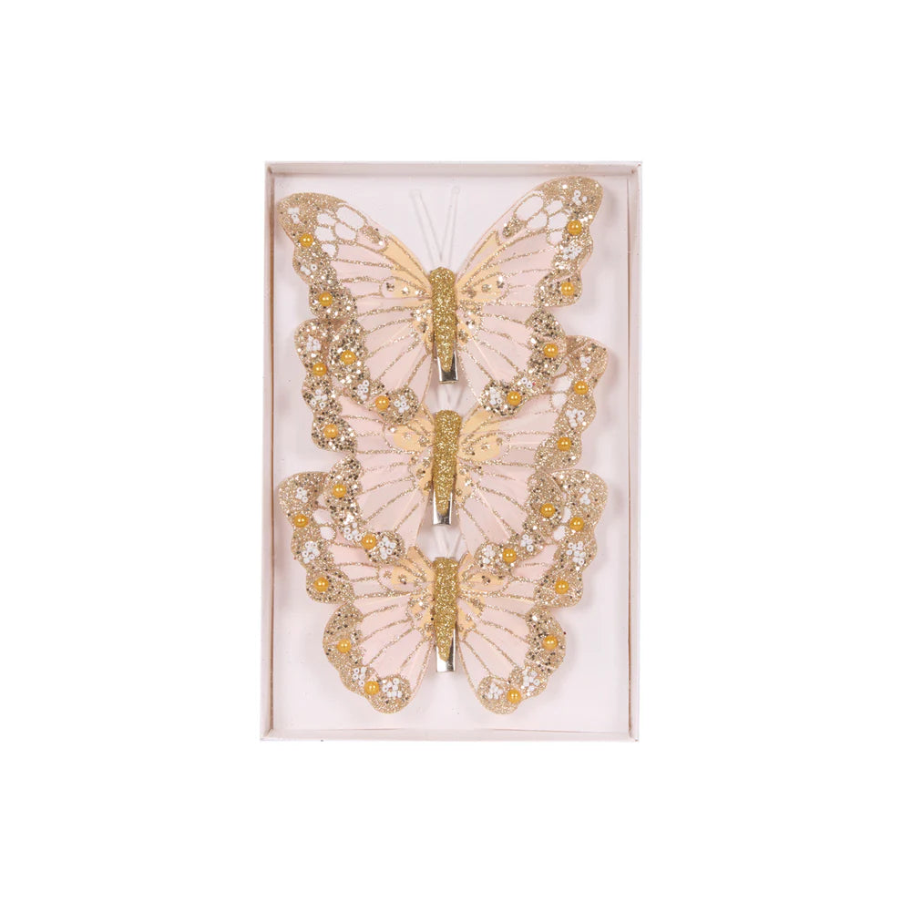 Set of 3 Pink and Gold Shimmering Butterflies