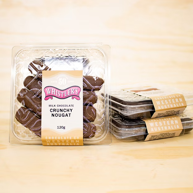 A resealable container of crunchy nougat coated in Milk Chocolate.