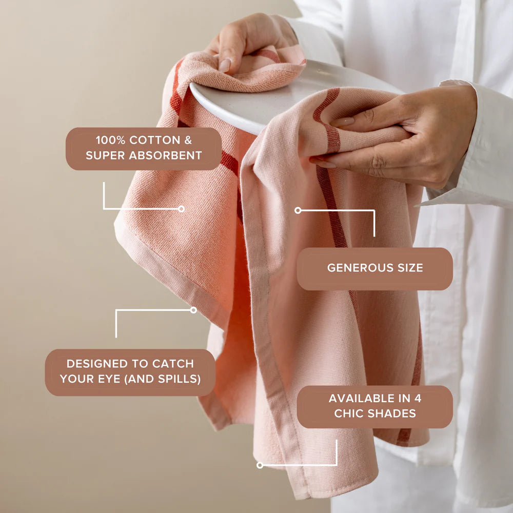 Between The Lines II Tea Towel Collection — Chic, handy, and yes, still envy-inducing. Our second-edition tea towels feature a fresh horizontal stripe, pairing back perfectly with the original vertical collection or flying solo in style. Designed to catch your eye (and your spills), they’re the perfect blend of fashion and function — drying dishes, styling benches, and making every kitchen moment feel considered.