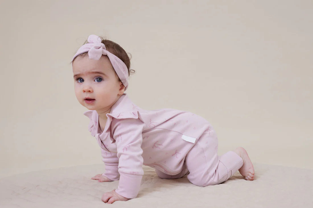 A beautiful everyday essential, our Lilly Bow Zip Romper brings comfort and practicality together in the sweetest way. Featuring a delicate all-over bow print on a soft pink base, this thoughtfully designed piece is perfect for both playtime and rest.