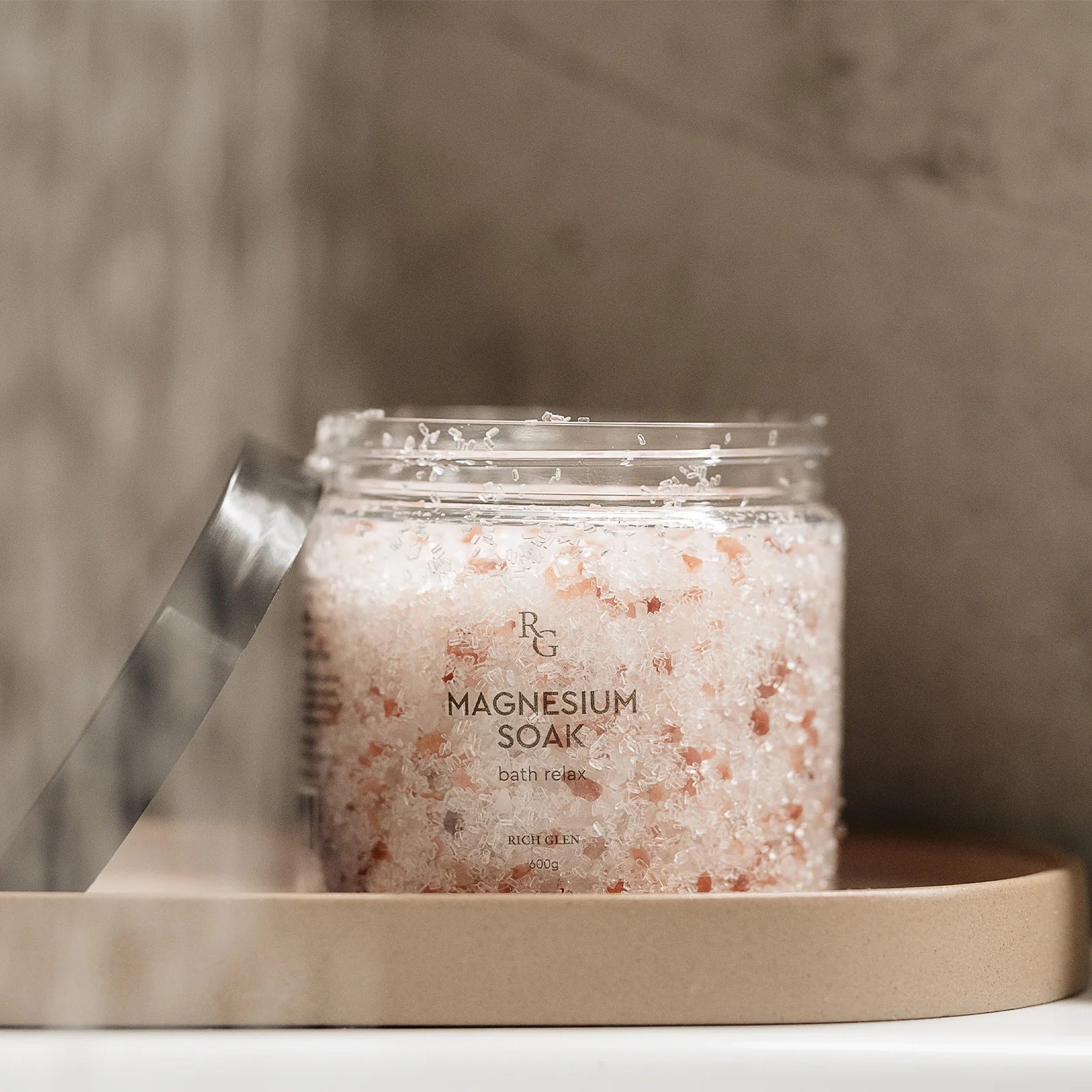 Unwind and indulge in our powerful Magnesium & Himalayan rock salts soak.