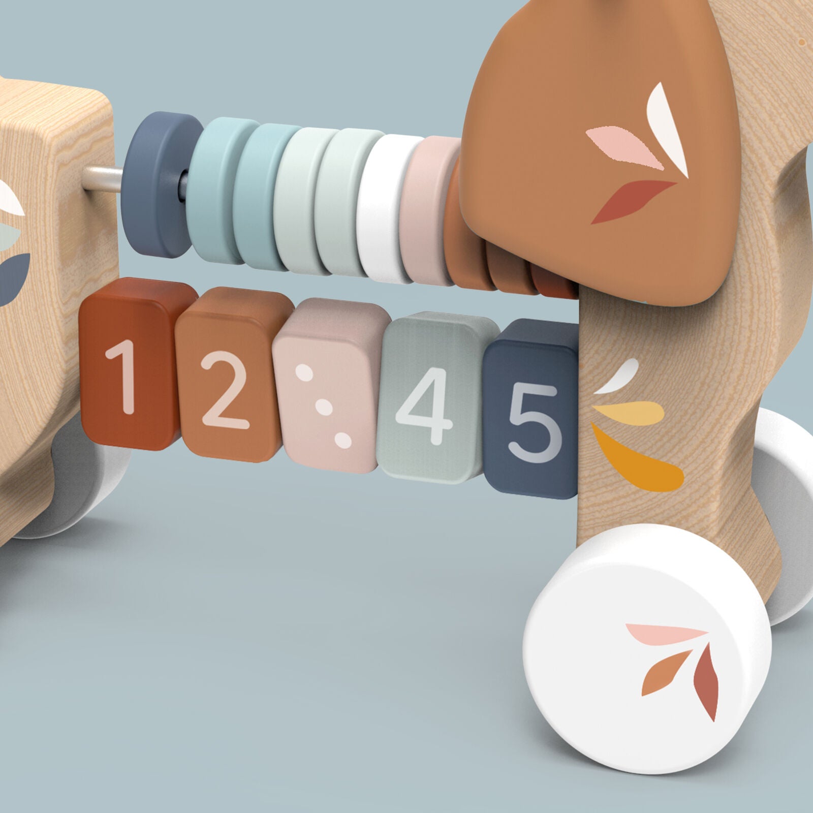 With its trendy multicolor finish and cheerful design with counting features, the Puppy Pull Along sparks imaginative play while promoting balance, coordination, and gross motor development. The easy-to-hold pull string allows your child to guide their pup on all kinds of journeys, indoors or out.