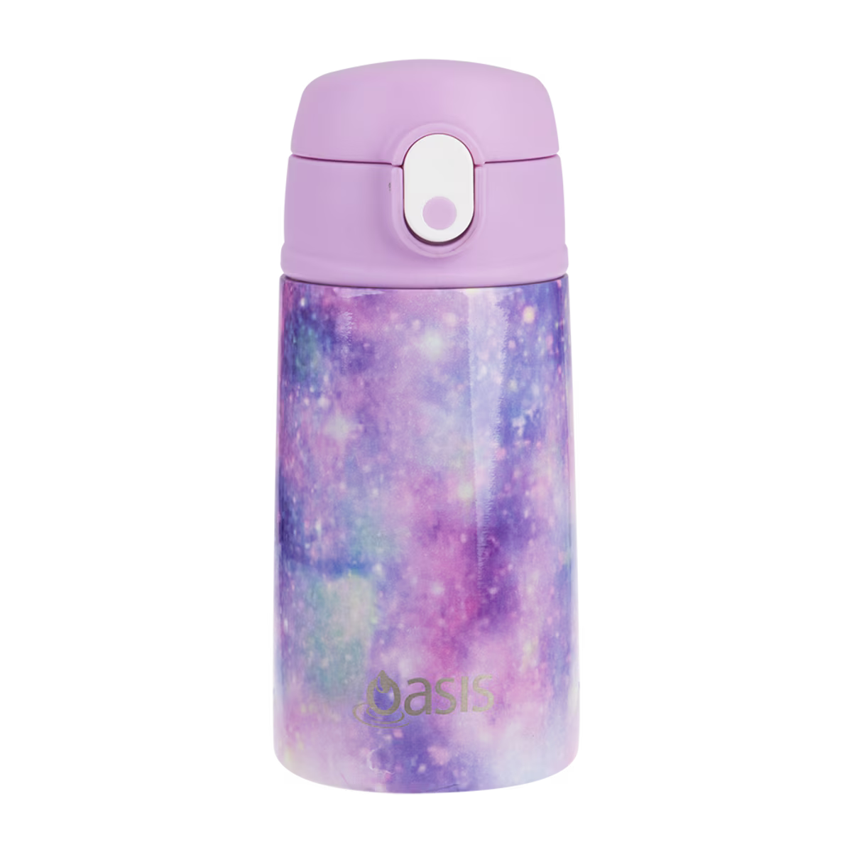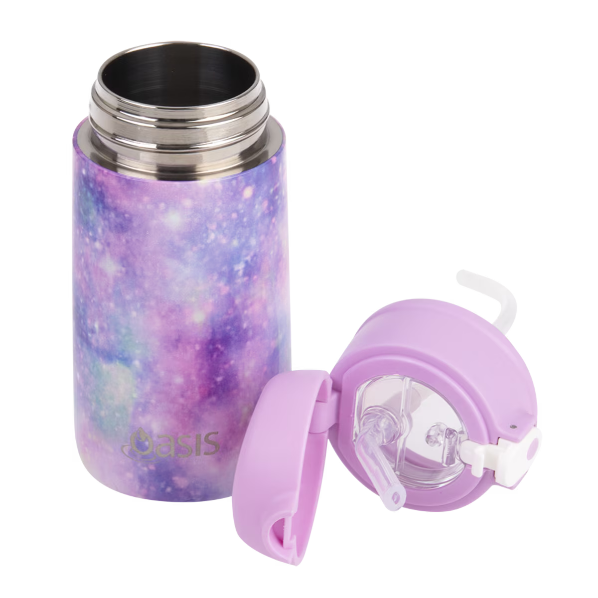 Perfect for school, sport and other activities, the Stainless Steel Double Wall Insulated Kid's Drink Bottle by Oasis features a flip lid with an easy to clean removable silicone sipper straw.