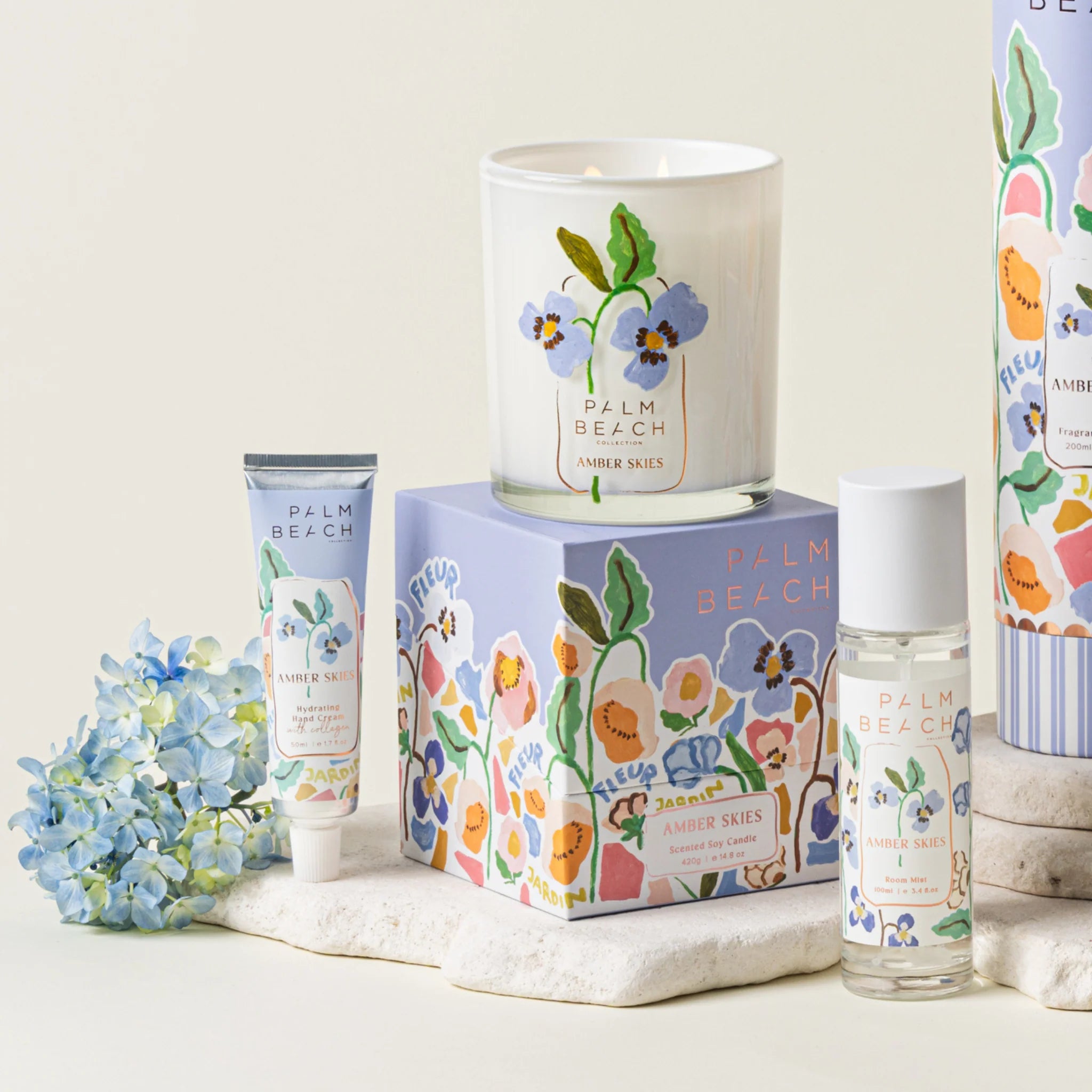 Amber skies is a decadent, oriental floral fragrance mixing luxurious saffron with jasmine, rose and the warm, sensual notes of amber.